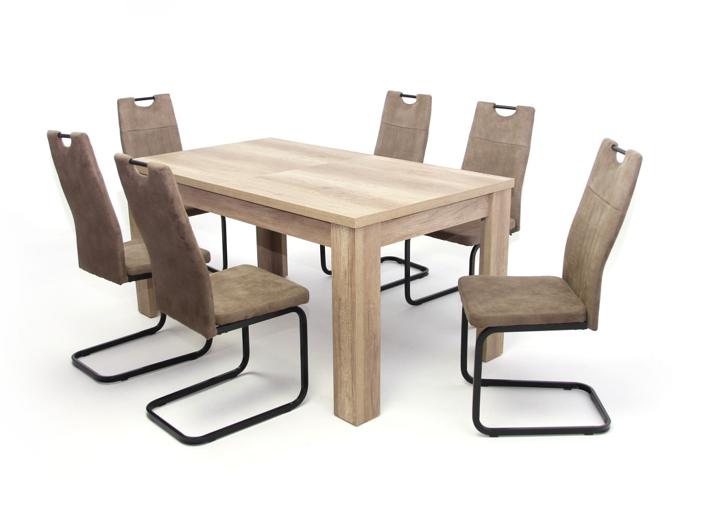 Atos asztal 160-as Canyon Tölgy + 6 db Torino szék Barna szövet