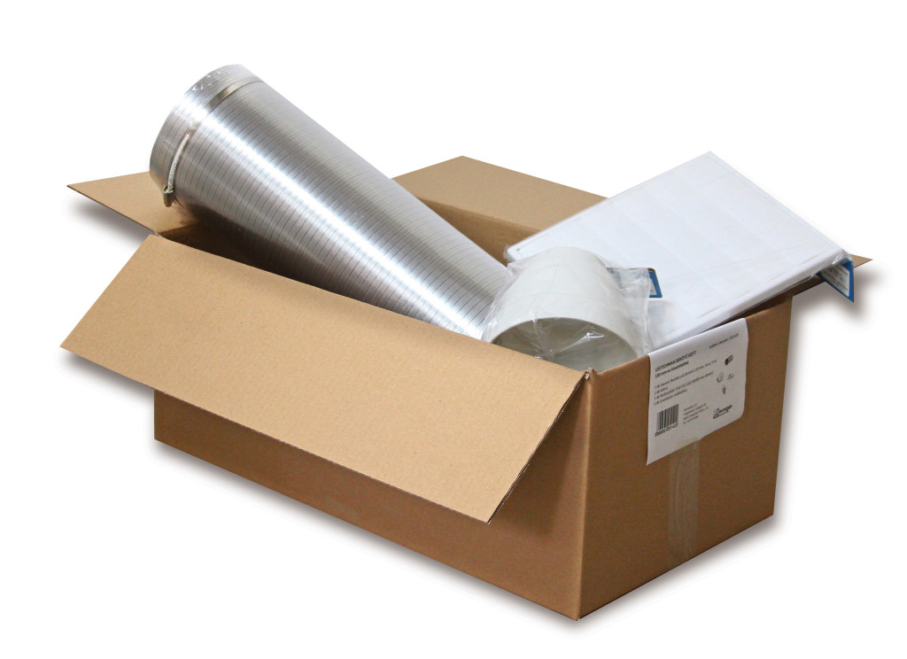 BEKÖTŐ SZETT 150 mm - AluVent Light flexibilis bekötőcső Ø150 mm/3 m - rögzítőbilincsek - műanyag szellőzőrács gravitációs zsaluval - multi szűkítő 80/100/120/125/150 mm