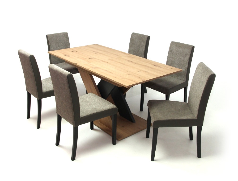 Az asztallap és a lábazat laminált faforgácslapból készült, ABS élzárással és PU ragasztási technológiával (Víz-, pára és hőálló, tartós kötést biztosít, ennek köszönhetően a bútorok élettartalmát jóval megnöveli!). Nagyobbítás, fém vasalattal. A lábazat központi kialakítású. Az asztallap alatt kialakított doboz biztosítja a vendéglap kényelmes tárolását.