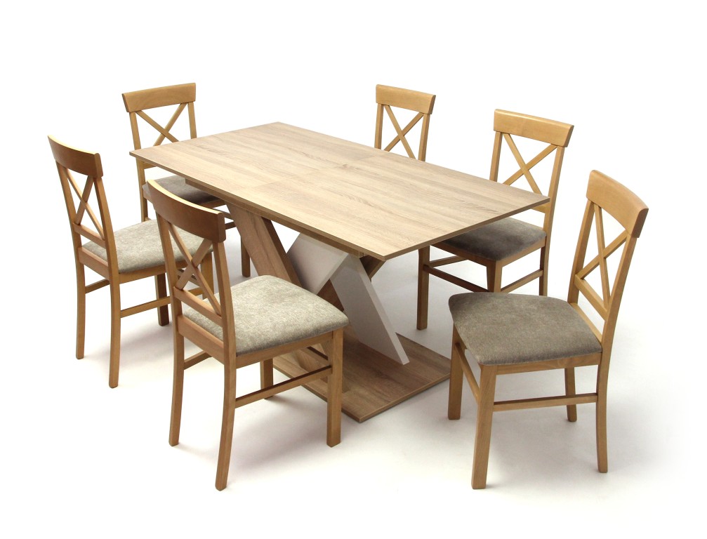 Az asztallap és a lábazat laminált faforgácslapból készült, ABS élzárással és PU ragasztási technológiával (Víz-, pára és hőálló, tartós kötést biztosít, ennek köszönhetően a bútorok élettartalmát jóval megnöveli!). Nagyobbítás, fém vasalattal. A lábazat központi kialakítású. Az asztallap alatt kialakított doboz biztosítja a vendéglap kényelmes tárolását.