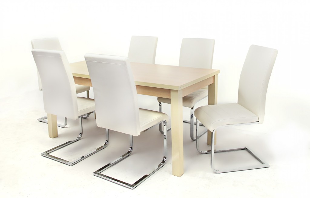 Berta asztal 160-as Juhar + 6 db Boston szék Fehér