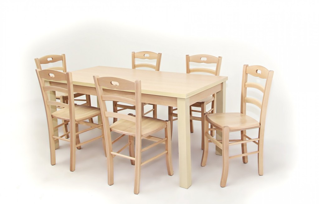 Berta asztal 160-as Juhar + 6 db Velence szék Juhar