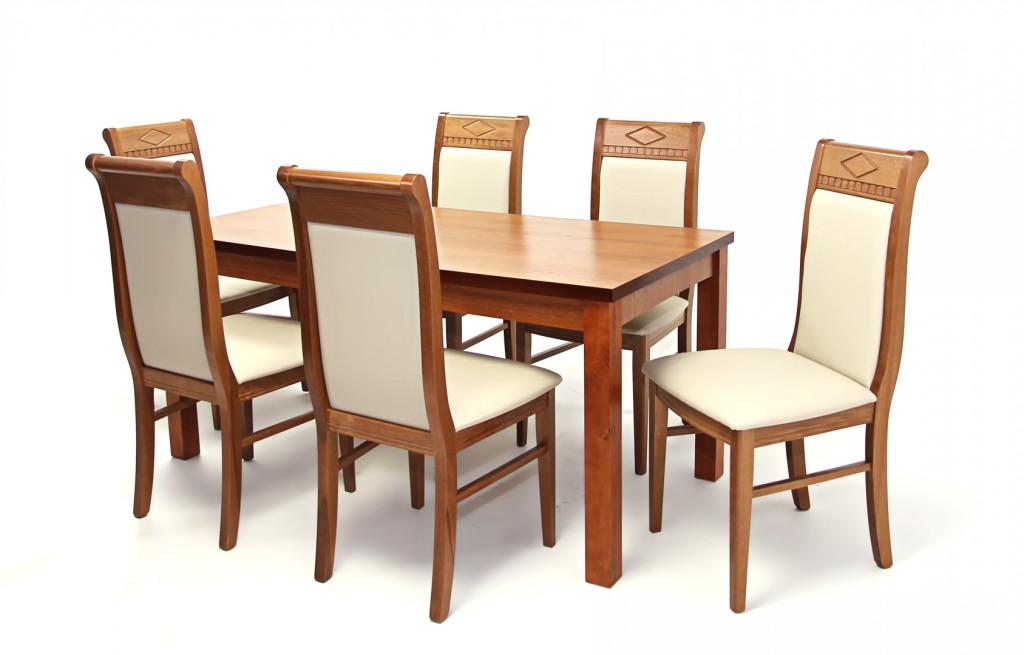Berta asztal 160-as Mogyoró + 6 db Raffaello szék Beige/Mogyoró