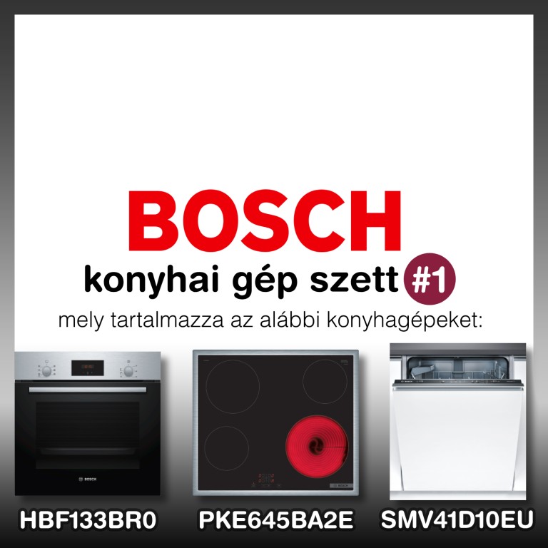 Bosch konyhai gép szett #1(HBF133BR0 sütő, PKE645BA2E főzőlap, SMV41D10EU mosogatógép)