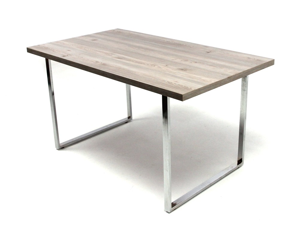 Laminált faforgácslapból készült asztallap duplungolt kivitellel, ABS élzárással és PU ragasztási technológiával, krómozott acél láb.