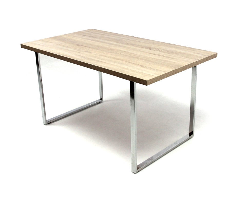 Laminált faforgácslapból készült asztallap duplungolt kivitellel, ABS élzárással és PU ragasztási technológiával, krómozott acél láb.