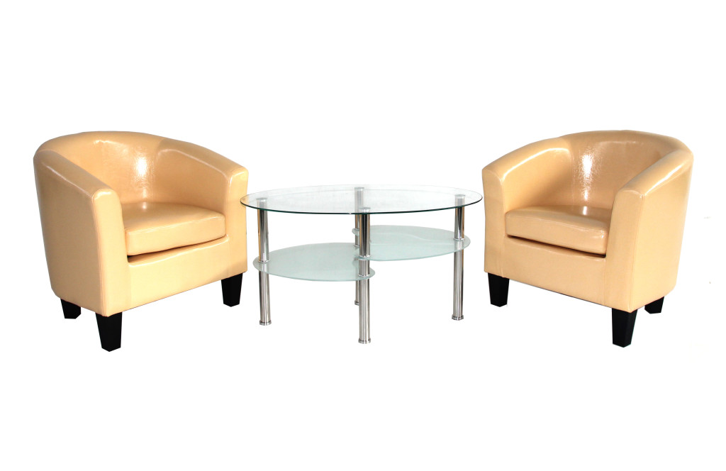 Cecil dohányzó : Edzett üveglap, krómozott fém szerkezet műanyag talpakkal. A képeken látható színekben raktárról rendelhetők. Összeszerelést igényel. Méret: 54 x 90 x 43 cm (Szélesség x Hosszúság x Magasság) Fargo Fotel : Vastagon szivacsozott műbőr kárpittal bevont szerkezet, műanyag lábakkal. Méret: 70 x 41 x 46 x 46 cm (magasság x ülőfelület magasság x ülőfelület szélesség x ülőfelület mélység)