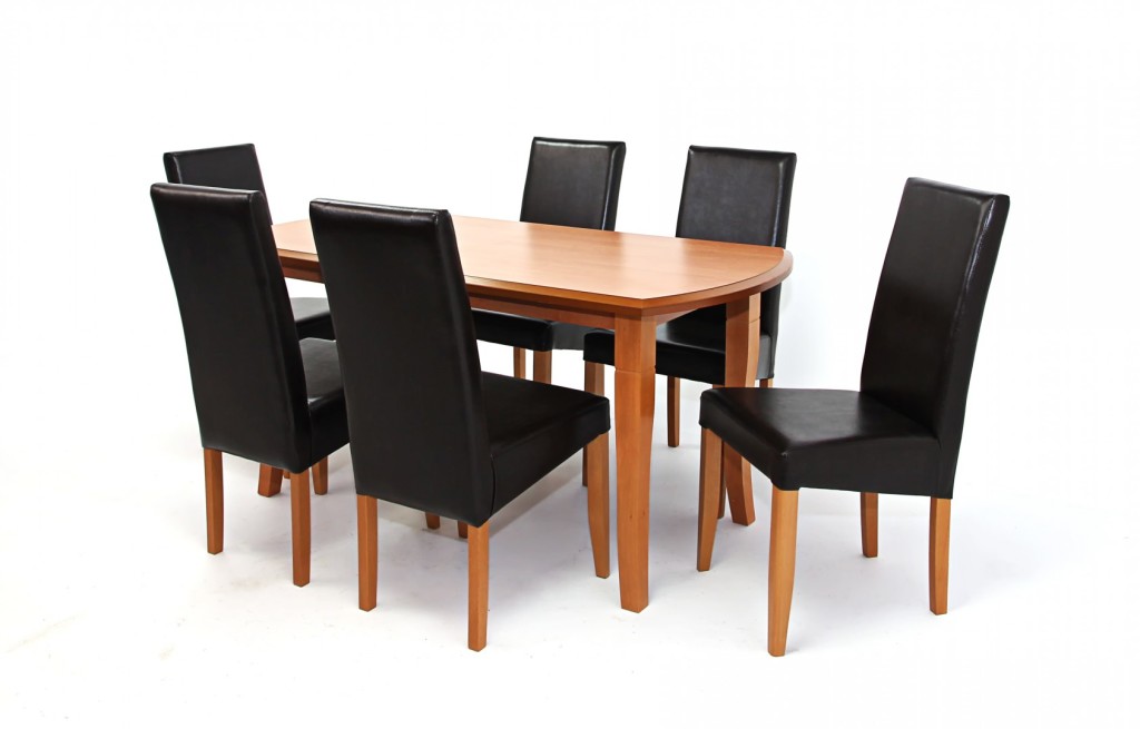 Cleo asztal 160-as Éger + 6 db Berta szék Sötétbarna/Éger