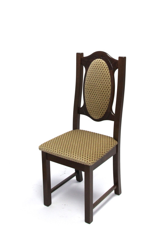 Tömörfa szerkezet, pácolva, lakkozva, textil kárpitos hátlappal és ülőlappal. Csomagolás : 1 doboz / 2 db