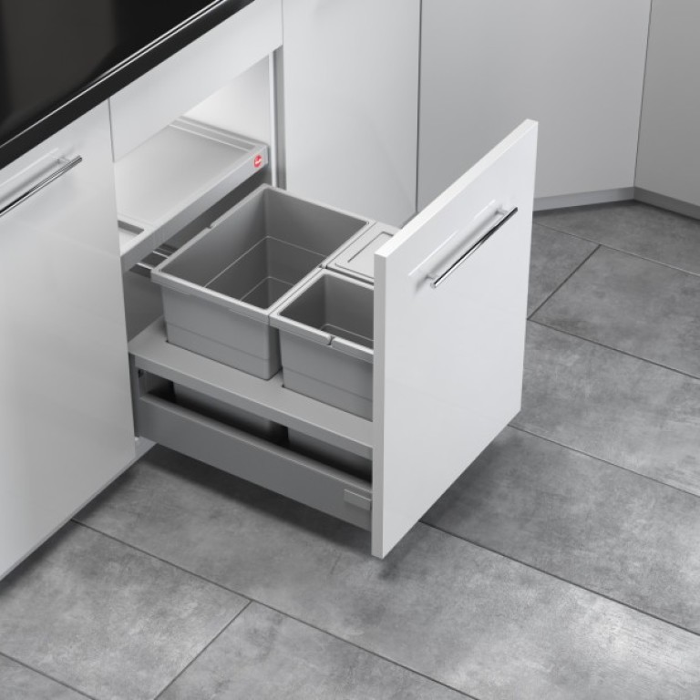 Fiókba ültethető szelektív hulladéktároló 2db nagy méretű, 18 literes vödörrel és két darab kisméretű 9 literes vödörrel