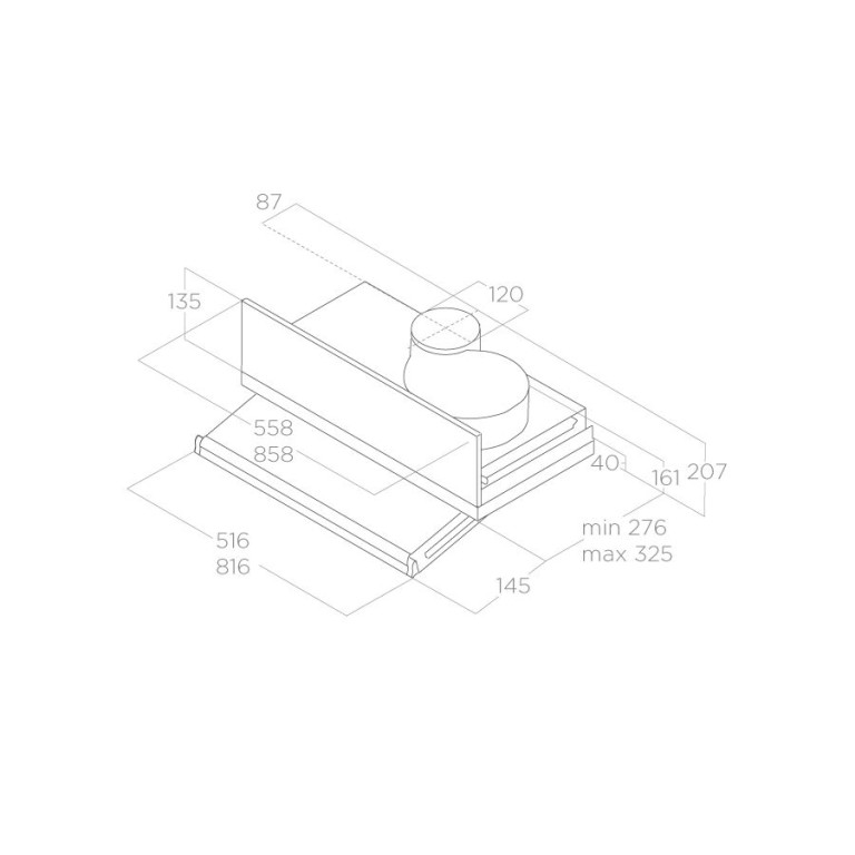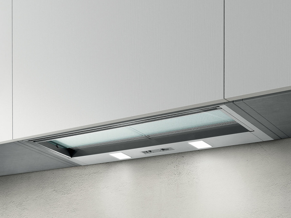 FELSŐSZEKRÉNYBE ÉPÍTHETŐ PÁRAELSZÍVÓ 56 cm széles Szabvány szerinti légszállítás (IEC): 100-255 m3/h Világítás: 2 x 2,5 W LED (4000 K) Zajszint: 48-66 dB Vezérlés: 3 fokozatú tolókapcsoló Csőcsonk mérete: O 120 mm Energiaosztály: D Speciális jellemzők: csukott állapotban teljesen eltűnik a bútorban