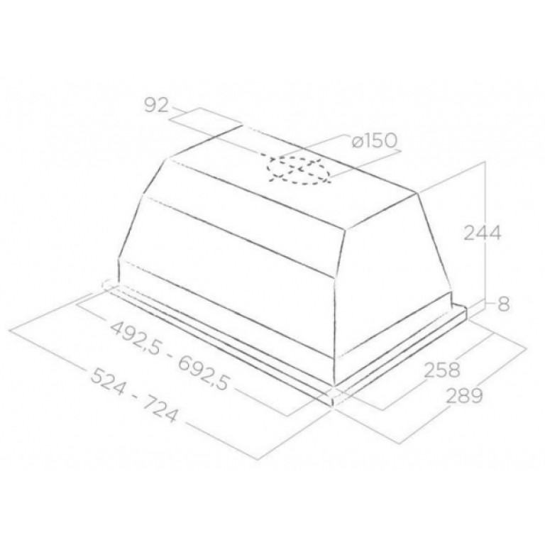 FELSŐSZEKRÉNYBE VAGY KÜRTŐBE ÉPÍTHETŐ PÁRAELSZÍVÓ 80 cm széles Szabvány szerinti légszállítás (IEC): 255-485 (turbo 645) m3/h Világítás: 2 x 5 W LED (3000 K) Zajszint: 49-65 (71) dB Vezérlés: 4 fokozatú tolókapcsoló Csőcsonk mérete: O 150 mm Energiaosztály: C Speciális jellemzők: könnyű beszerelés