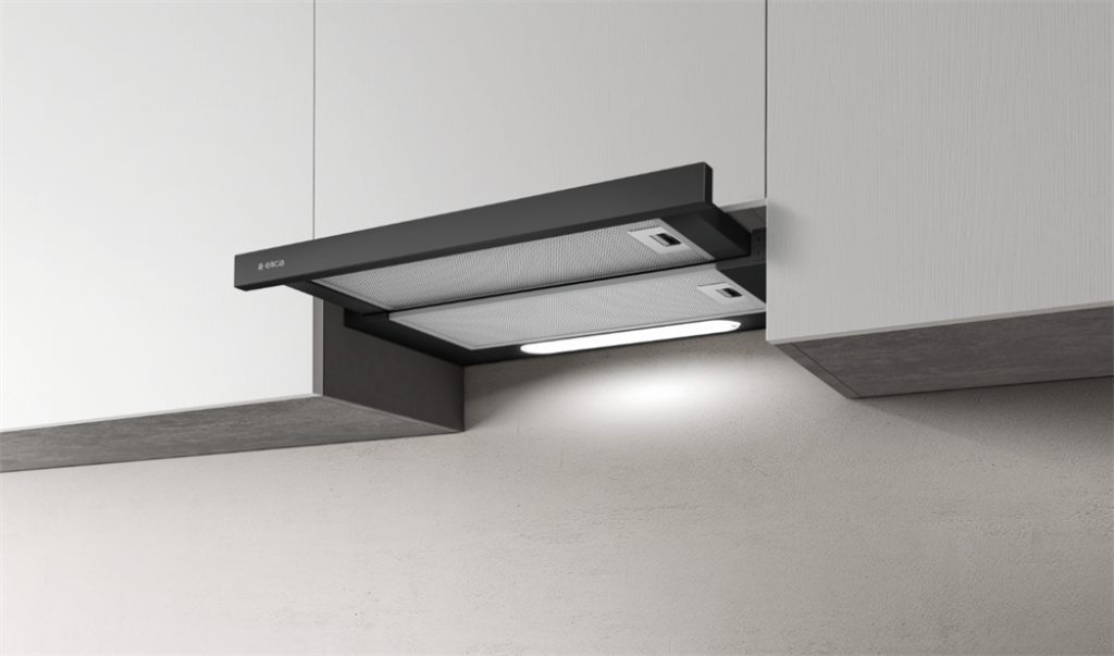TELESZKÓPOS KIHÚZHATÓ PÁRAELSZÍVÓ Szabvány szerinti légszállítás (IEC): 125-304 m3/h, Világítás: 2 x 3 W LED (2700 K) Zajszint: 46-62 dB Vezérlés: 3 fokozatú nyomógombos Csőcsonk mérete: O 120 mm Energiaosztály: D