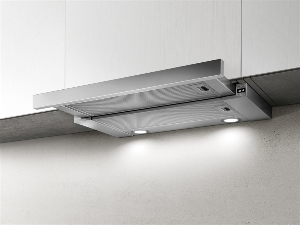 TELESZKÓPOS KIHÚZHATÓ PÁRAELSZÍVÓ 60 cm széles Szabvány szerinti légszállítás (IEC): 240-480 (turbo 581) m3/h Világítás: 2 x 2,5 W LED Zajszint: 44-61 (65) dB Vezérlés: 3+1 fokozatú érintőgombos Csőcsonk mérete: O 150 mm Energiaosztály: C