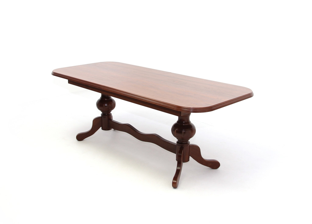 Az asztallap egyoldalt laminált MDF, élprofilozva; pácolt, lakkozott, esztergált tömörfa lábakkal. Nagyobbítás, fém vasalattal. Méret: 90 x 200+(50) x 80,5 cm (Szélesség x Hosszúság x Magasság) Bruttó súly : 54 kg Csomagolás : 1 db / 2 doboz