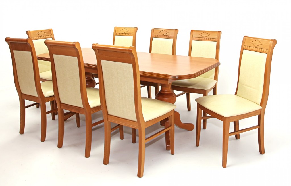 Európa Max asztal Éger + 8 db Raffaello szék Beige/Éger