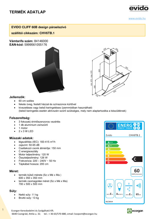EV.CLIFF 60B 60 cm elszivó Fekete