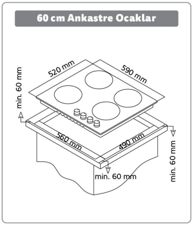 Készülék típusa: Beépíthető gáz főzőlap, 60 cm