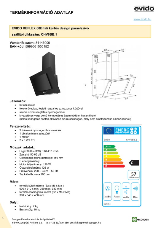 Szabvány szerinti légszállítás(IEC) : 170-415 m3/h