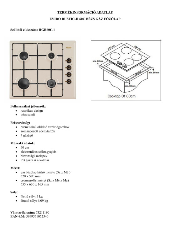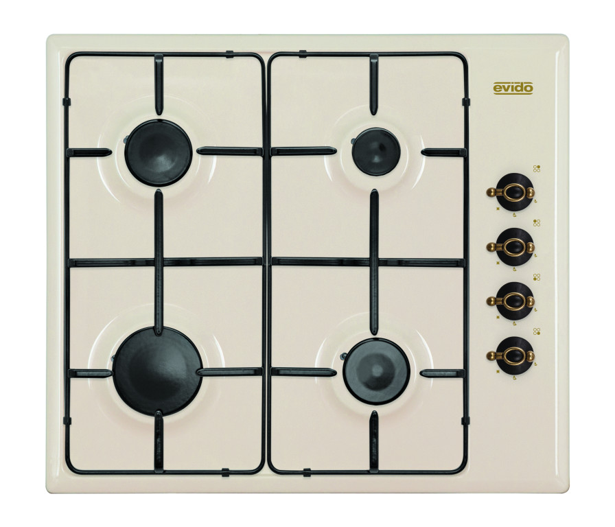 zománcozott edénytartók,60 cm 4 gázégő, bronz színű oldalsó vezérlőgombok, elektronikus szikragyújtás, biztonsági szelep, PB gázra is alkalmas