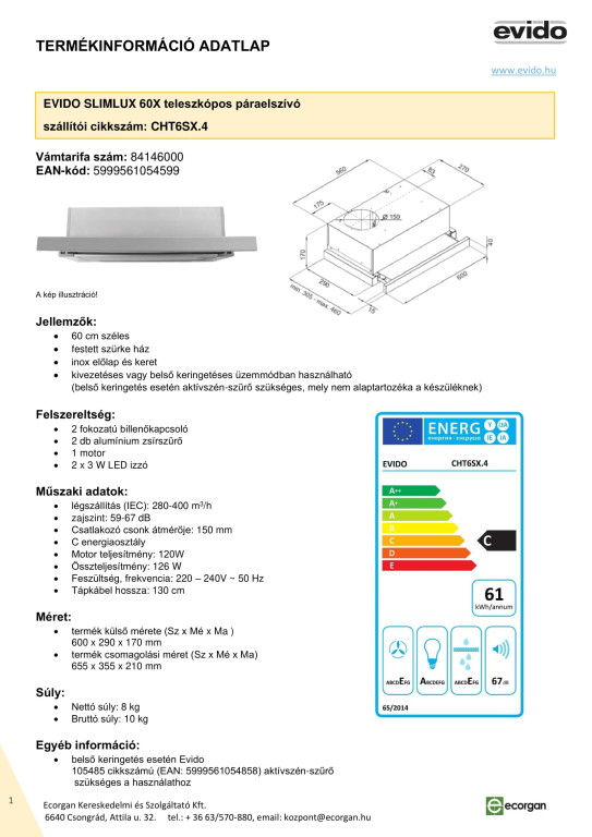 EV.SLIMLUX 60GW 60 cm elszívó Fehér