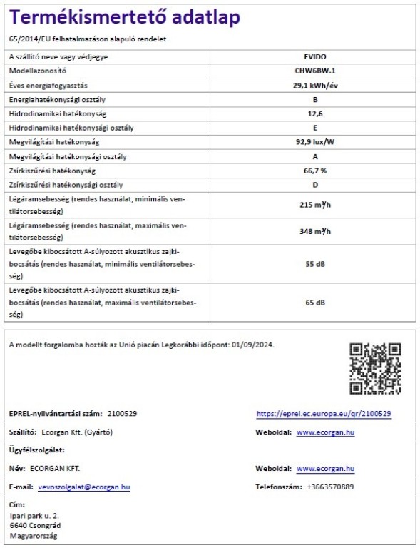 EVIDO TRICOL páraelszívó 60cm Fehér