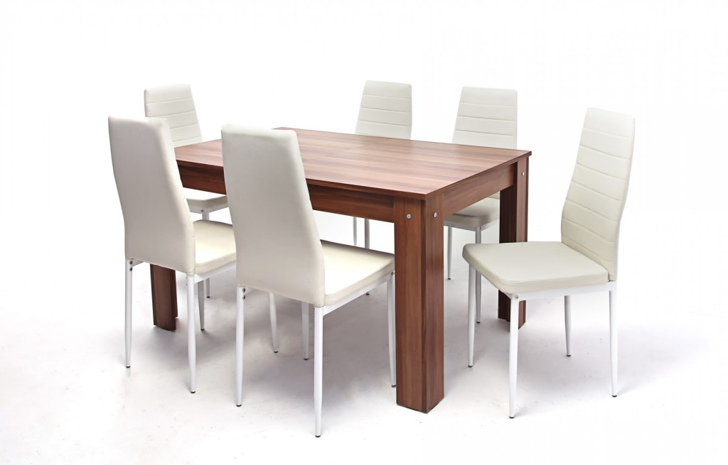 Félix asztal 135-ös Szilva + 6 db Geri szék Fehér