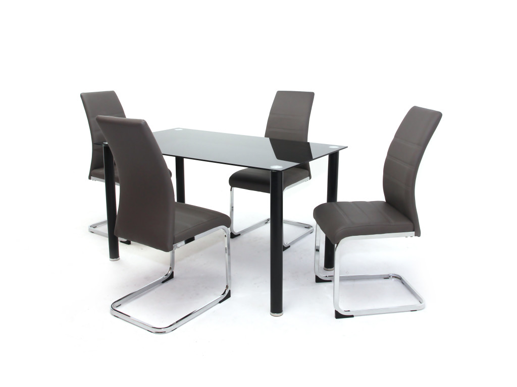 Geri üvegasztal 130-as Fekete + 4 db Kevin szék Szürke