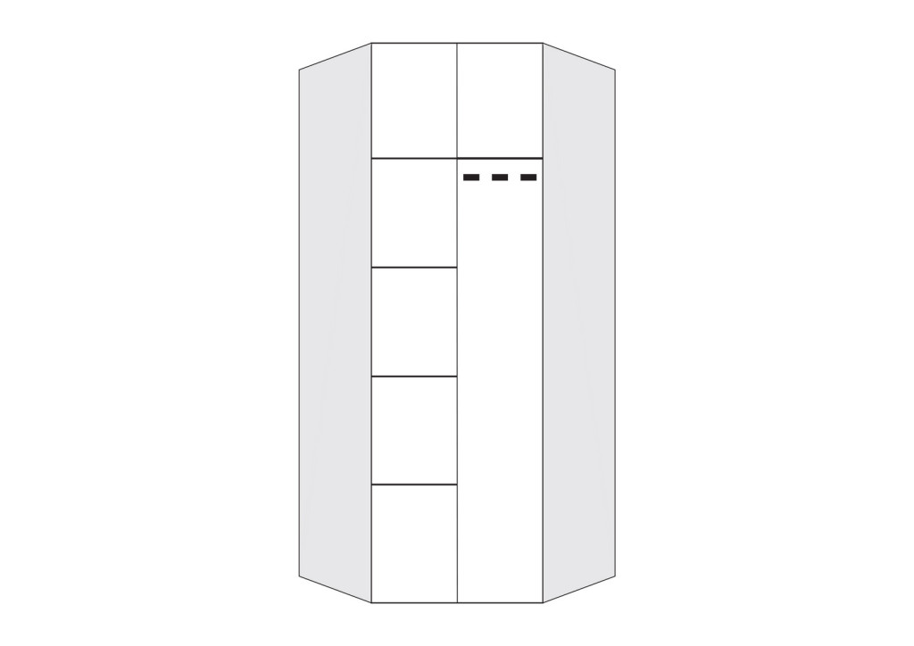 Gardróbszekrény 16 mm-es faforgácslapból, lapraszerelt kivitellel és fém fogantyúval.