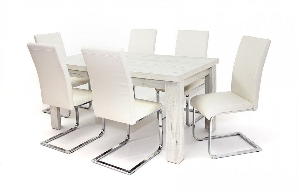 Indiana asztal 160-as Rusztik Fehér + 6 db Boston szék Fehér