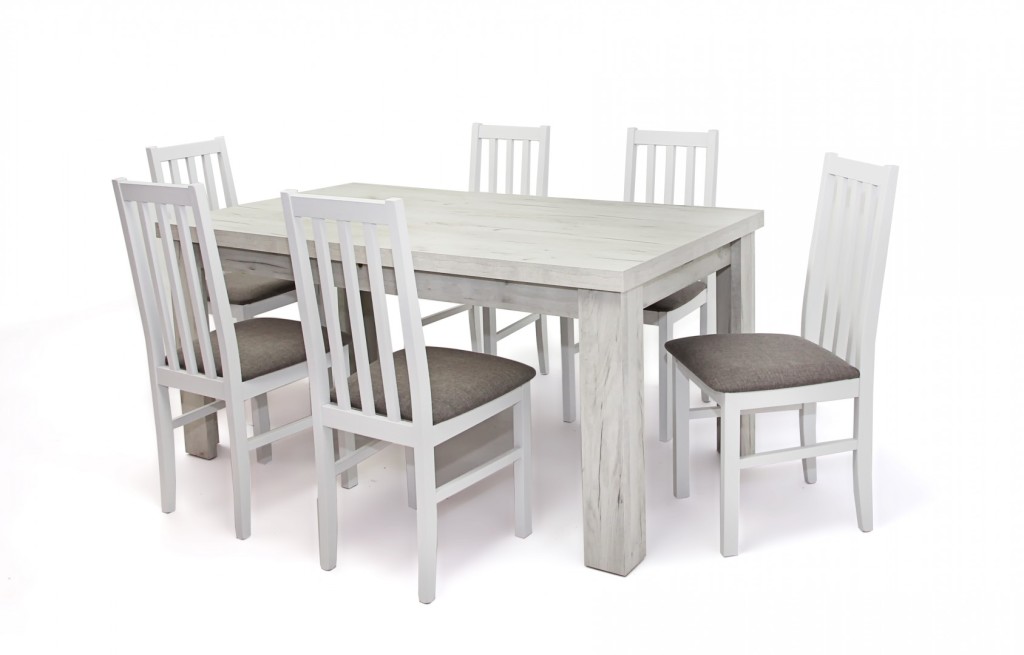 Indiana asztal 160-as Rusztik Fehér + 6 db Mokka szék Fehér