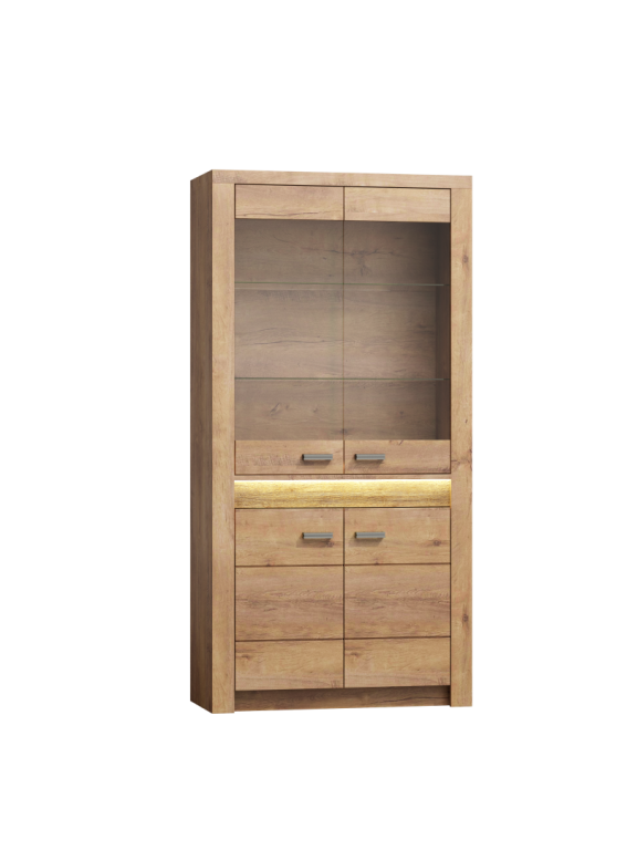 Lapraszerelt bútor, álló vitrin. Méretek : 96x42x192 (led világítással) Bruttó súly : 73 kg Csomagolás : 1 db / 2 doboz