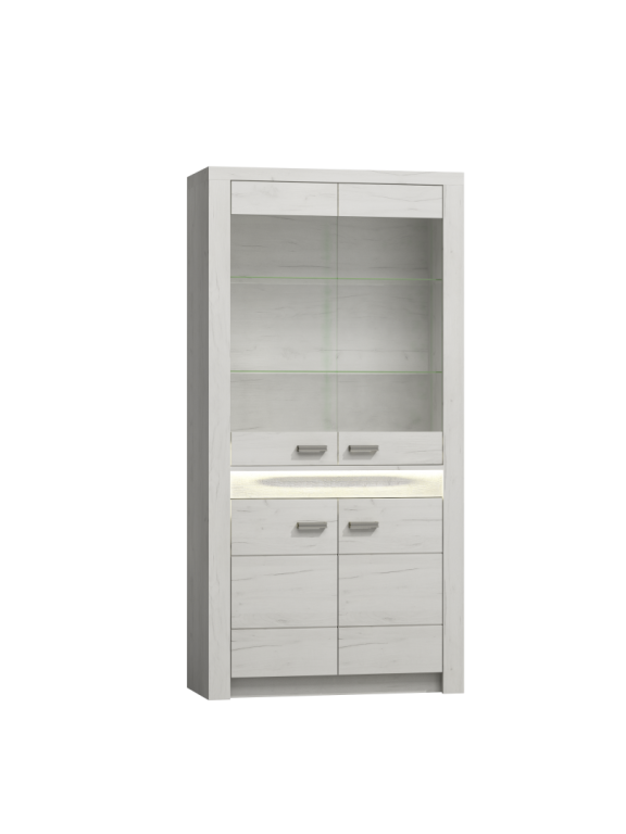 Lapraszerelt bútor, álló vitrin. Méretek : 96x42x192 (led világítással) Bruttó súly : 73 kg Csomagolás : 1 db / 2 doboz