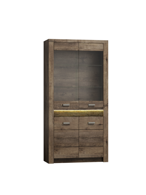 Lapraszerelt bútor, álló vitrin. Méretek : 96x42x192 (led világítással) Bruttó súly : 73 kg Csomagolás : 1 db / 2 doboz