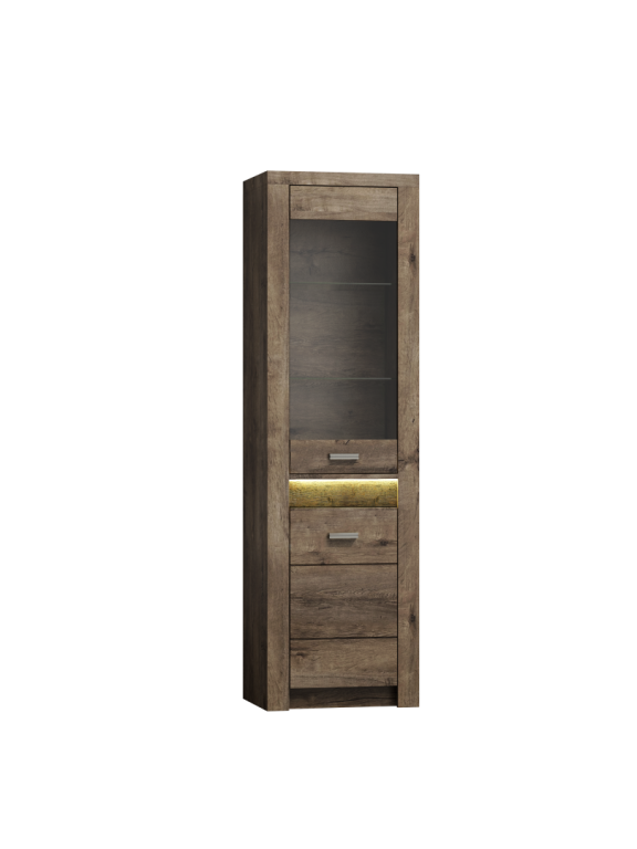 Lapraszerelt bútor, álló vitrin. Méretek : 56x42x192 (led világítással) Bruttó súly : 50,6 kg Csomagolás : 1 db / 2 doboz