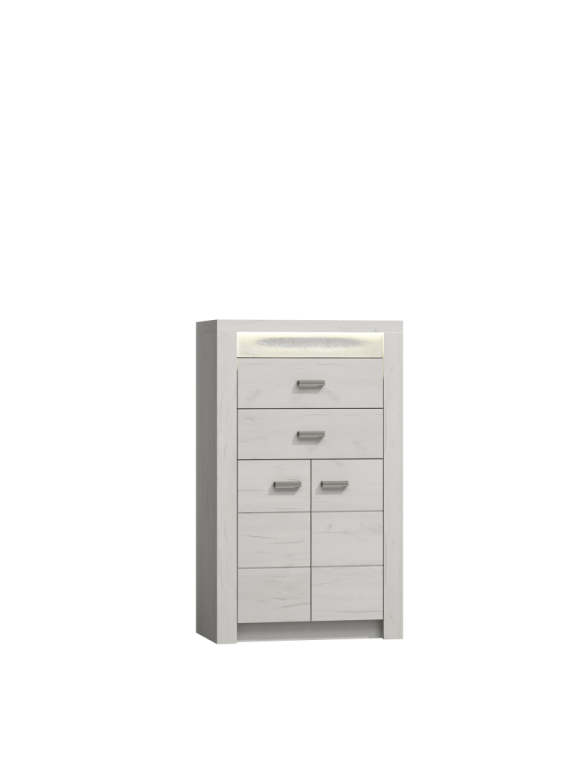 Lapraszerelt bútor, komód. Méretek : 76x42x127 (led világítással) Bruttó súly : 52,7 kg Csomagolás : 1 db / 2 doboz
