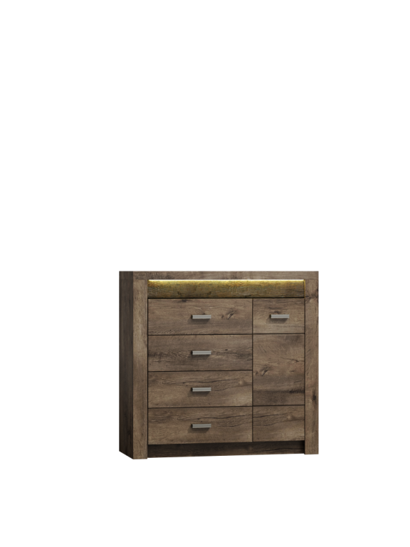 Lapraszerelt bútor, komód. Méretek : 109x42x104(led világítással) Bruttó súly : 62,9 kg Csomagolás : 1 db / 2 doboz