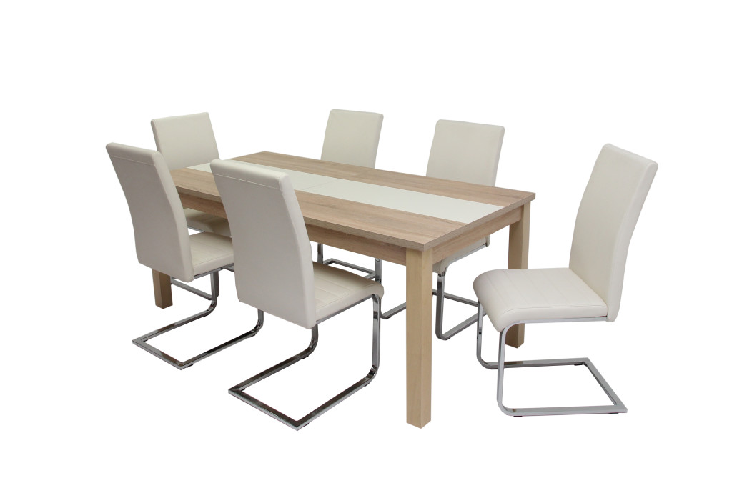 Irish asztal 180-as Sonoma/Bézs + 6 db Boston szék Fehér