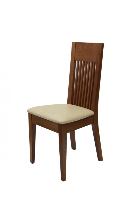 Tömörfa bükkfa szerkezet pácolva, lakkozva, magas minőségű műbőr kárpitozással. Méret: 100 x 48 x 46 x 42 cm (magasság x ülőfelület magasság x ülőfelület szélesség x ülőfelület mélység)