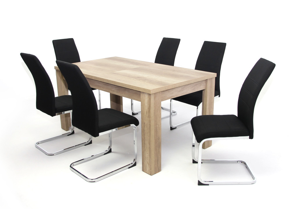 Atos asztal 160-as Canyon Tölgy + 6 db Kevin szék Fekete szövet