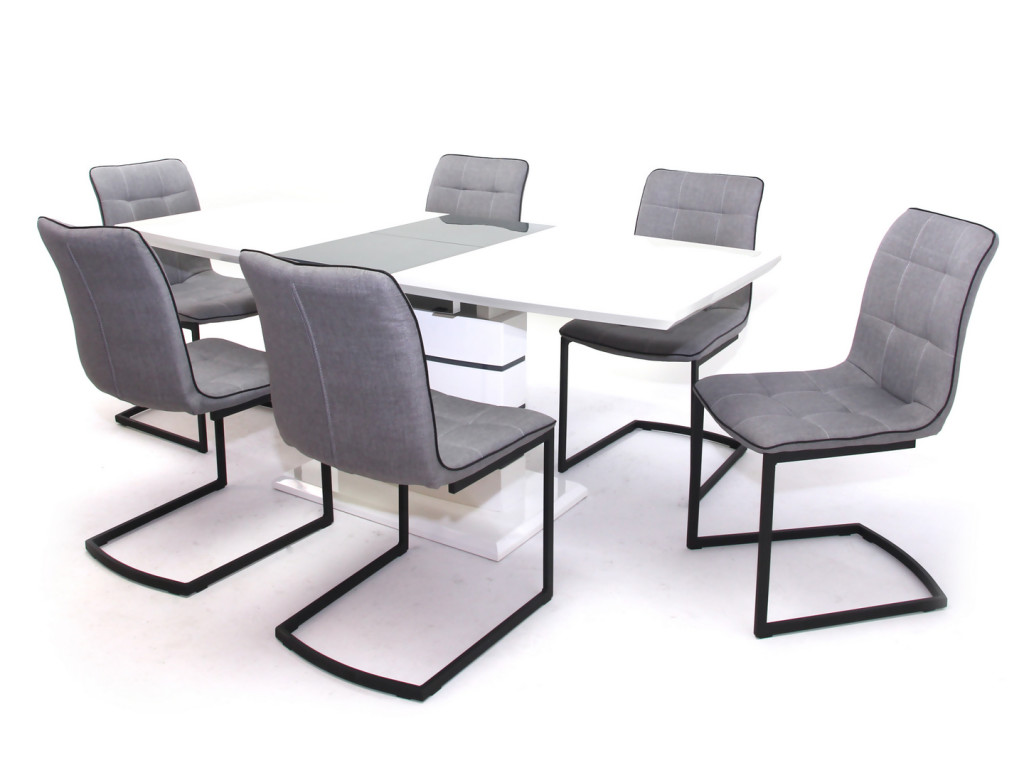 Aurél asztal 140-es Fehér/Szürke + 6 db Aston szék Világos Szürke