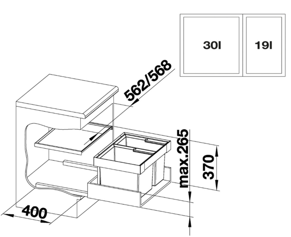 Rugalmasan beépíthető kihúzható fiókos alsószekrényekbe