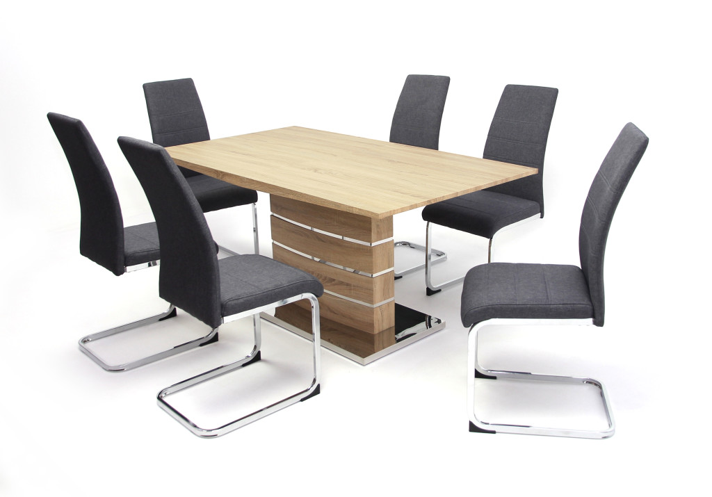 Claudia asztal 160-as Sonoma + 6 db Kevin szék Szürke szövet