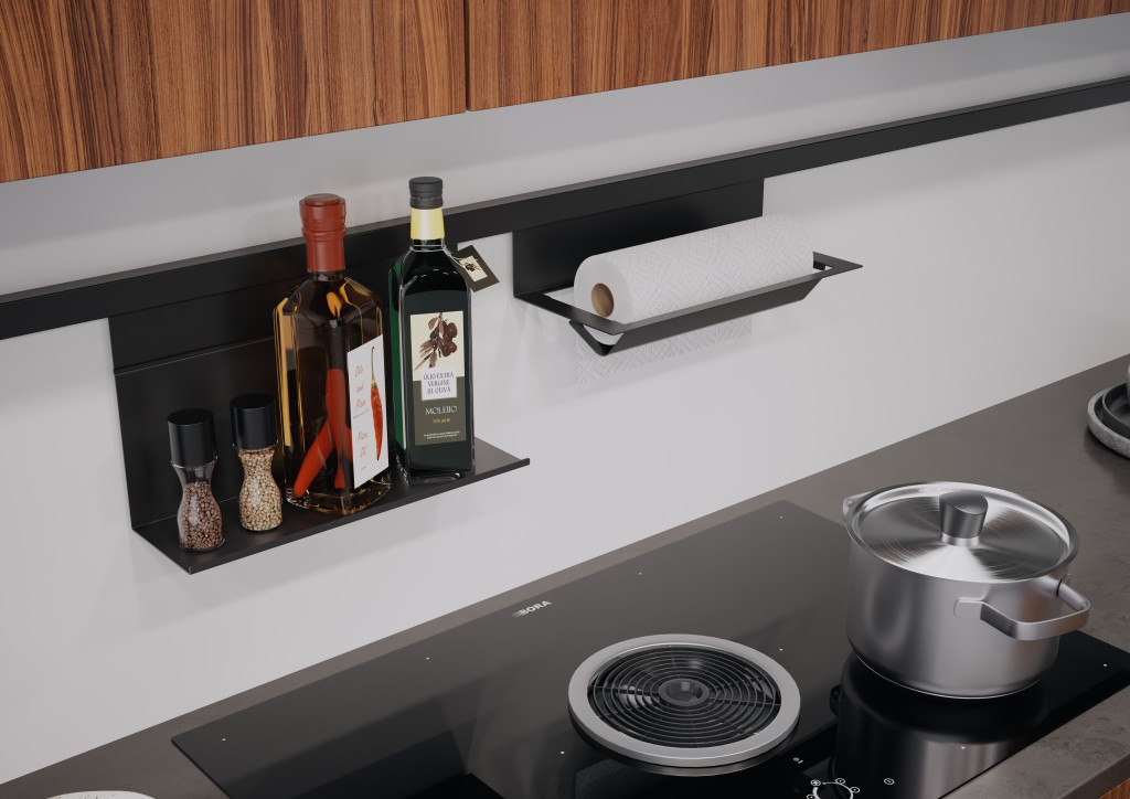 - Parktikus tárolási megoldás: A polcon fűszerek, olajok vagy kisebb tárgyak tárolhatók, míg az oldalsó részre egy papírtörlő hengert helyezhetünk.