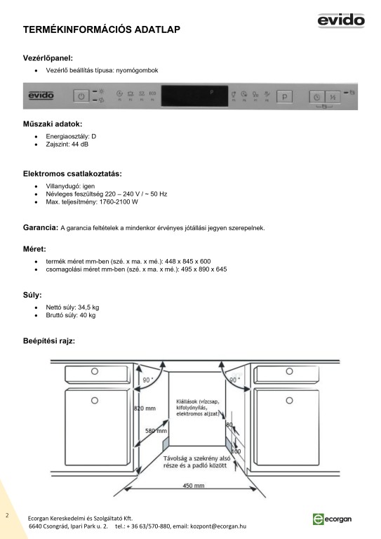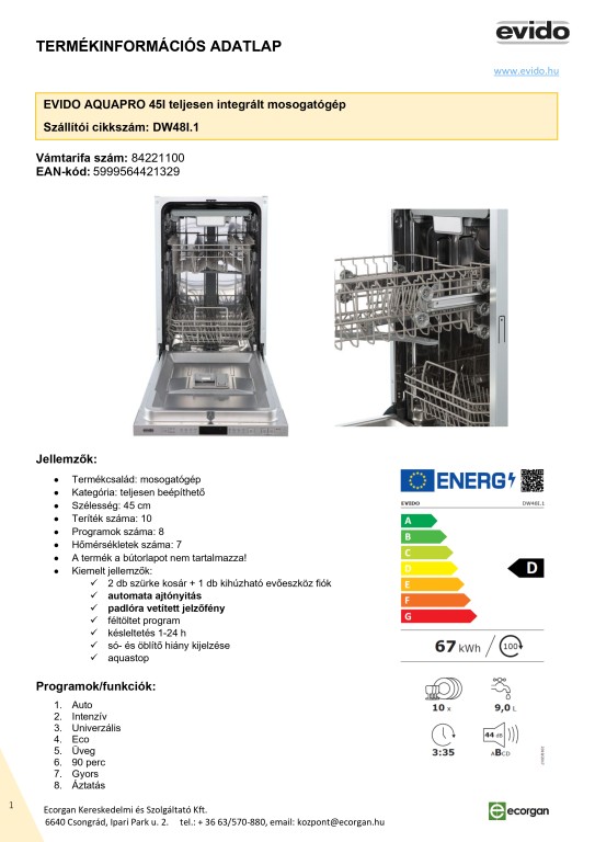 EVIDO AQUAPRO 45I beép. mosogatógép