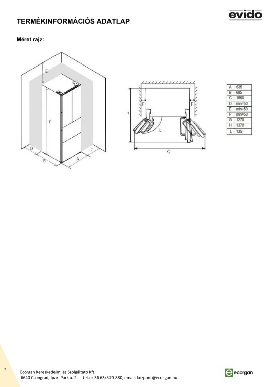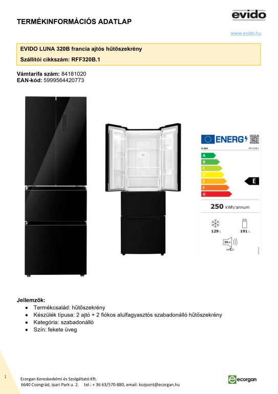 Szabadonálló hűtőszekrény