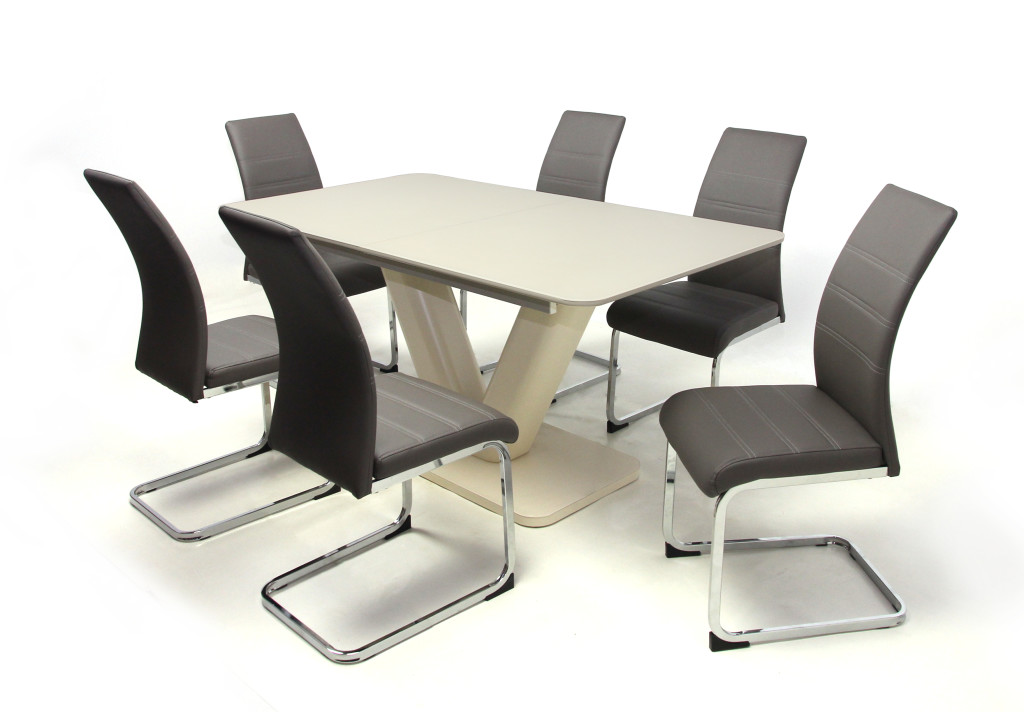 Hektor asztal 160-as Beige/Cappuccino + 6 db Kevin szék Szürke