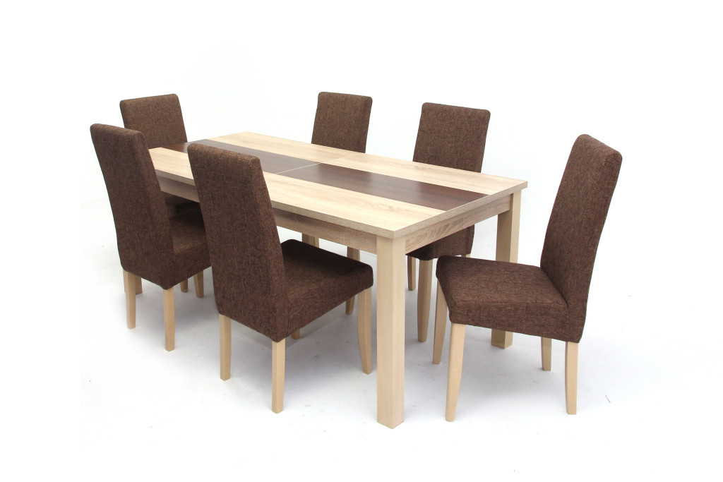 Irish asztal 180-as Sonoma/Barna + 6 db Berta szék Sötétbarna szövet/Sonoma