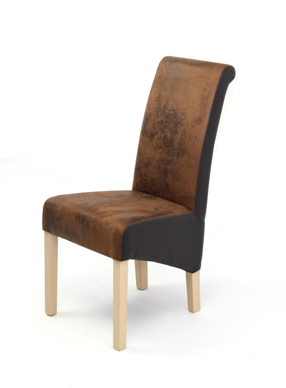 Tömörfa szerkezet, pácolva, lakkozva, műbőr kárpitos hátlappal és ülőlappal. Méret: 100 x 49 x 48 x 43 cm (magasság x ülőfelület magasság x ülőfelület szélesség x ülőfelület mélység) Bruttó súly : 8,3 kg Csomagolás : 2 db/kartondoboz