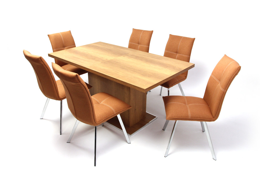 Kevin asztal 160-as Petra Tölgy + 6 db Heli szék Barna szövet
